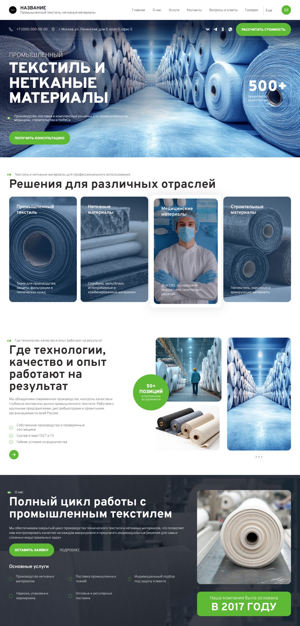 Готовый сайт 'Промышленный текстиль, нетканые материалы' № 100025