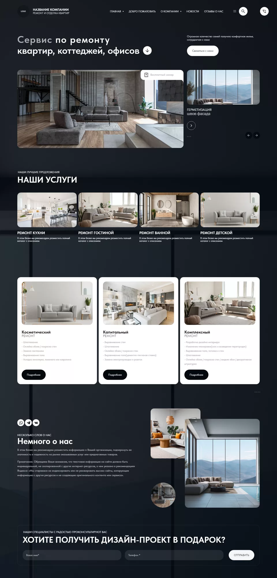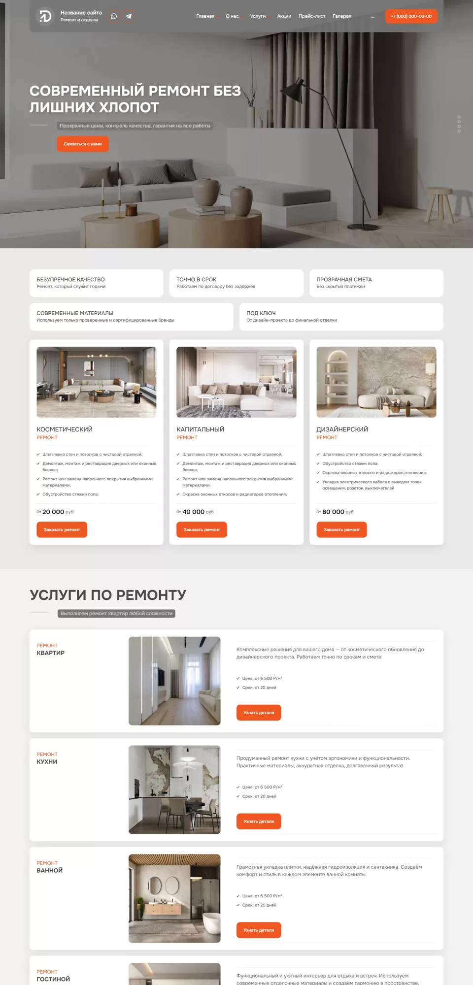 Готовый сайт 'Ремонт и отделка квартир и помещений' № 100533