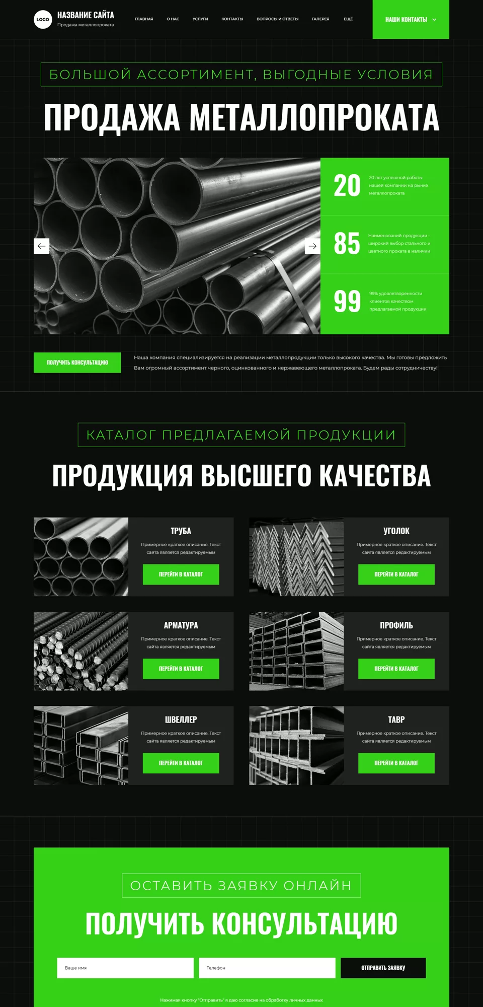Готовый сайт 'Металлопрокат' № 100544