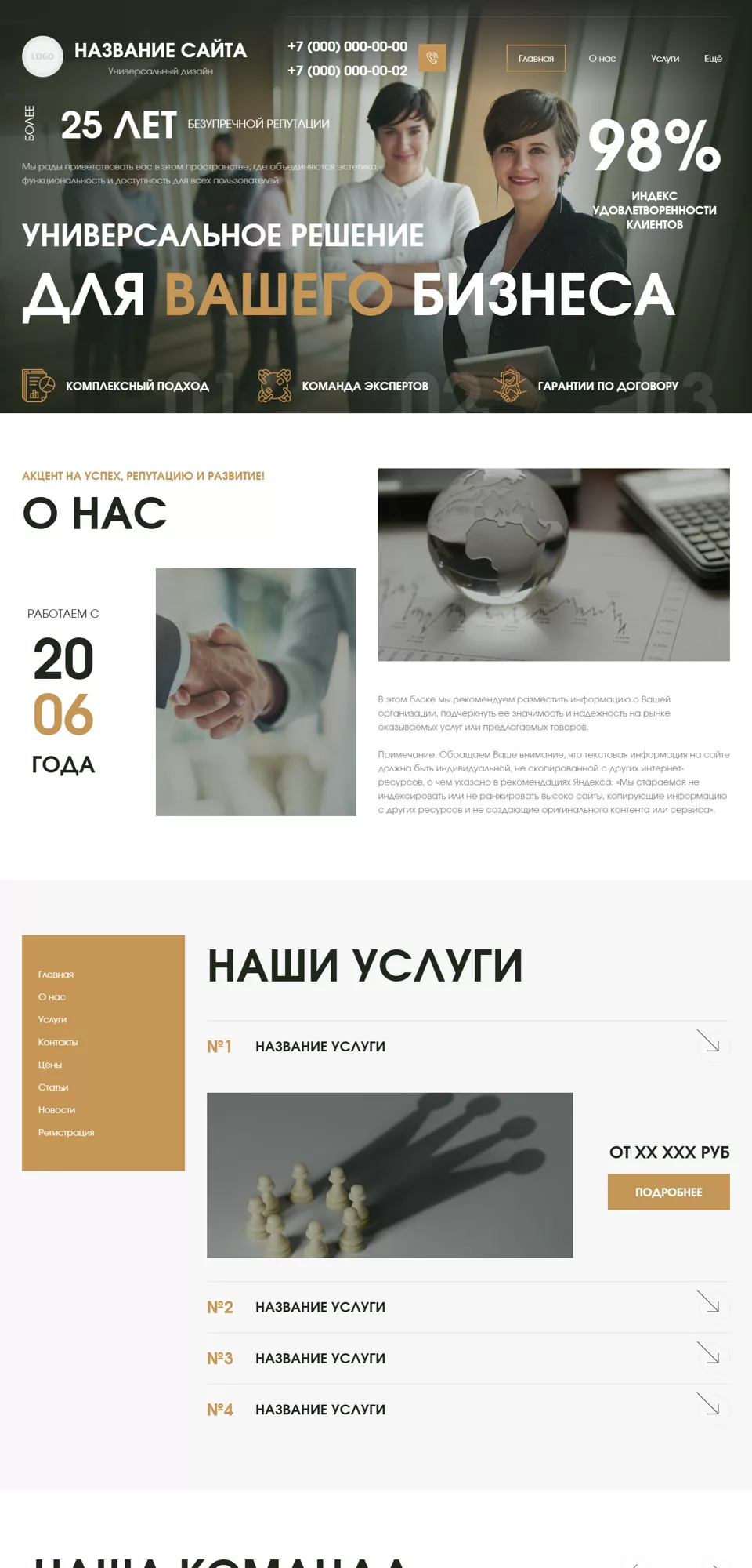 Выберите понравившийся дизайн, мы разместим в нём ваши фирменные элементы и цвета. После оплаты дизайн будет снят с продажи, он продается только один раз! Управлять сайтом проще простого, текстовое наполнение и картинки можно легко изменить в системе управления сайтом.