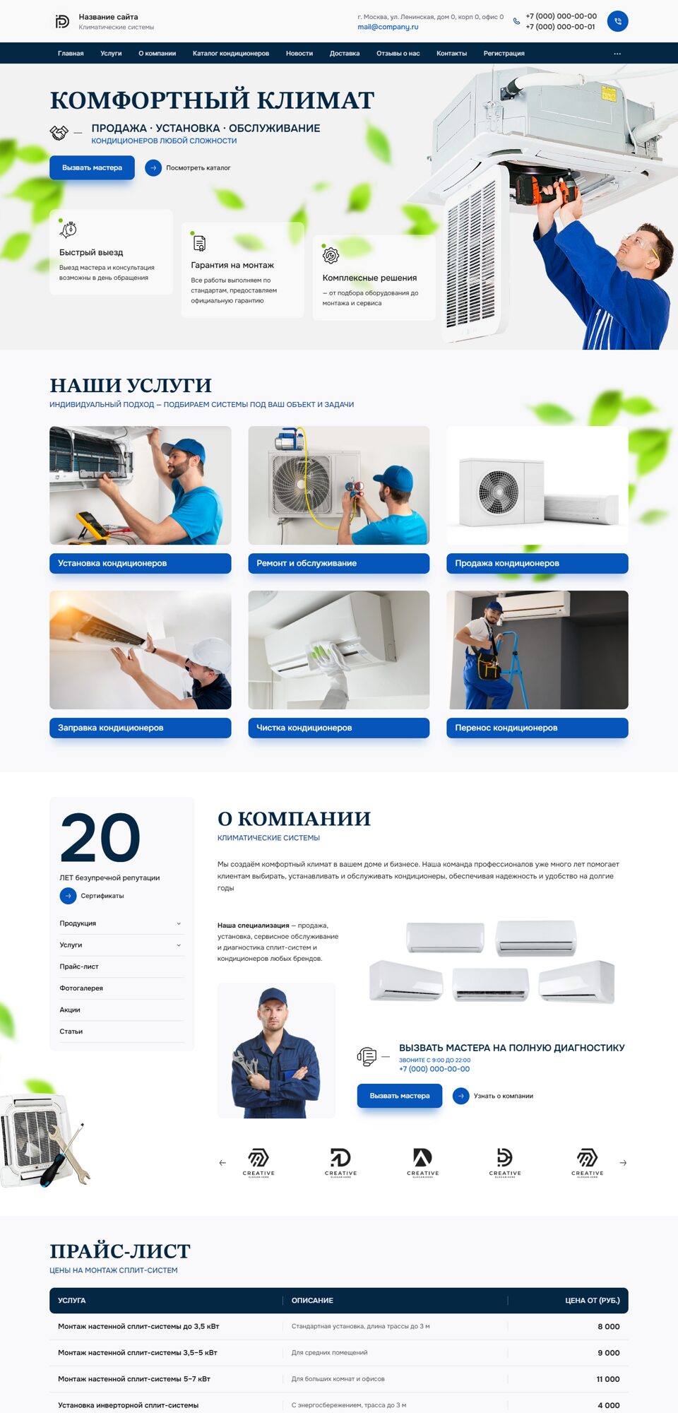 Готовый сайт 'Кондиционеры. Монтаж климатических систем' № 101129