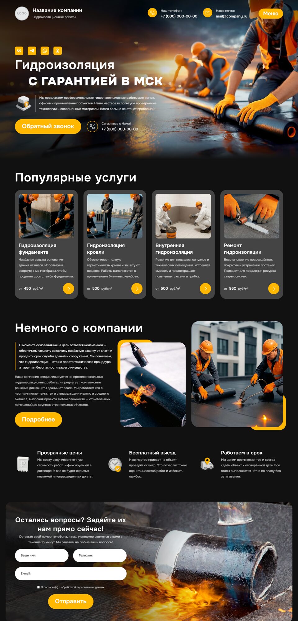 Готовый сайт 'Гидроизоляционные работы' № 101731