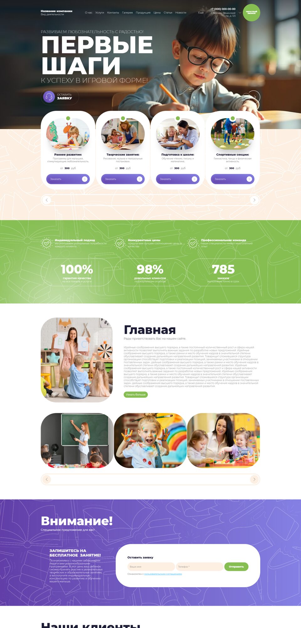 Готовый сайт 'Дошкольное образование, центры развития детей' № 102605