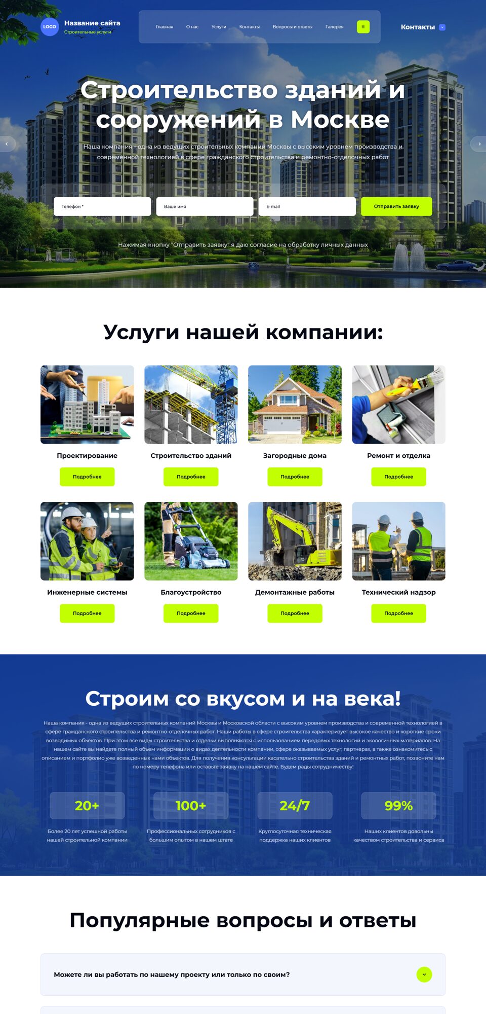 Готовый сайт 'Строительство зданий и сооружений' № 102637