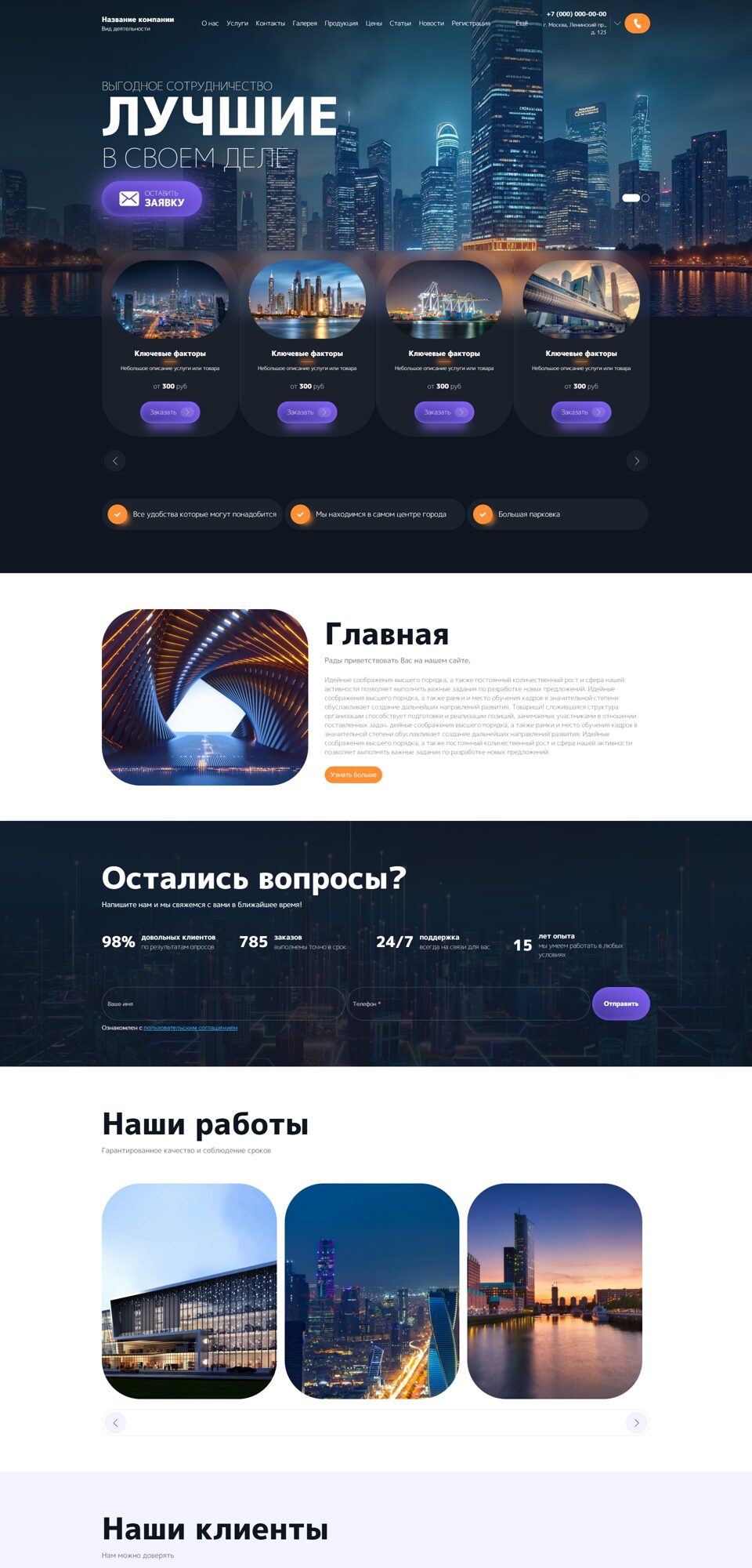 Проанализировав тысячи успешных сайтов на рынке, мы внедрили лучшие решения в наши сайты. Для вас дизайнеры разработали сотни сайтов с профессиональным дизайном, продуманной структурой и использованием передовых технологий и трендов.