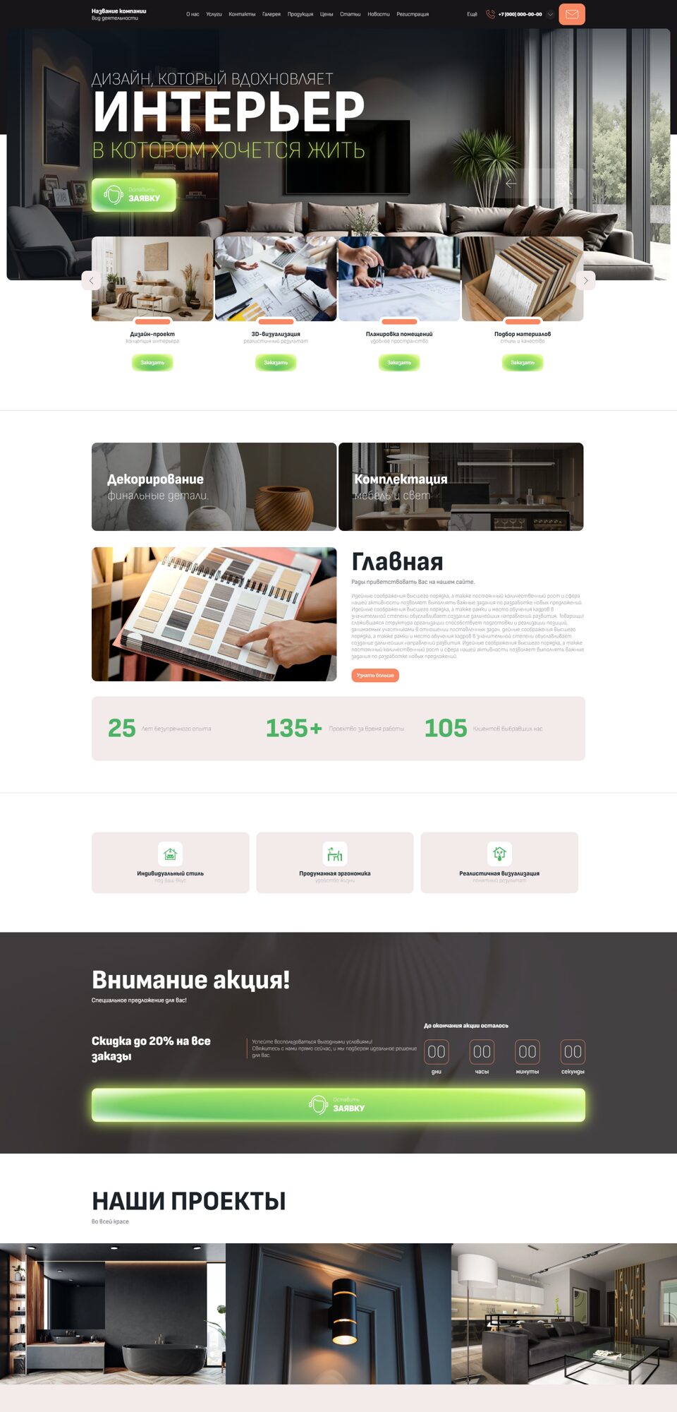 Готовый сайт 'Дизайн интерьеров' № 104032