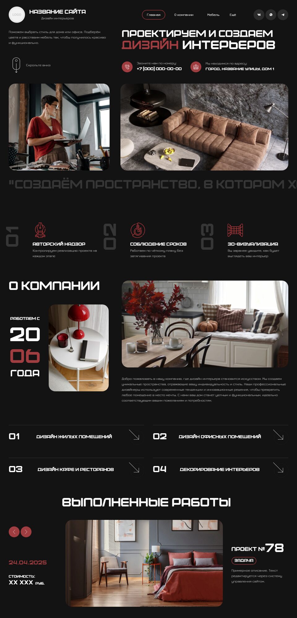 Готовый сайт 'Дизайн интерьеров' № 104032
