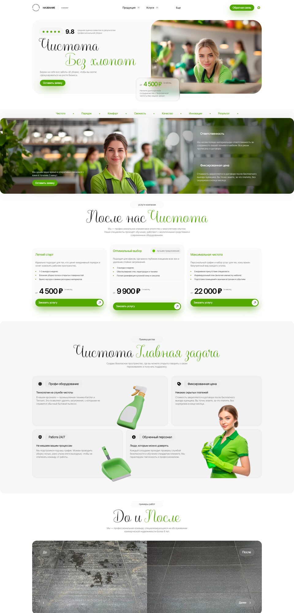 Готовый сайт 'Клининговые услуги, уборка' № 104286