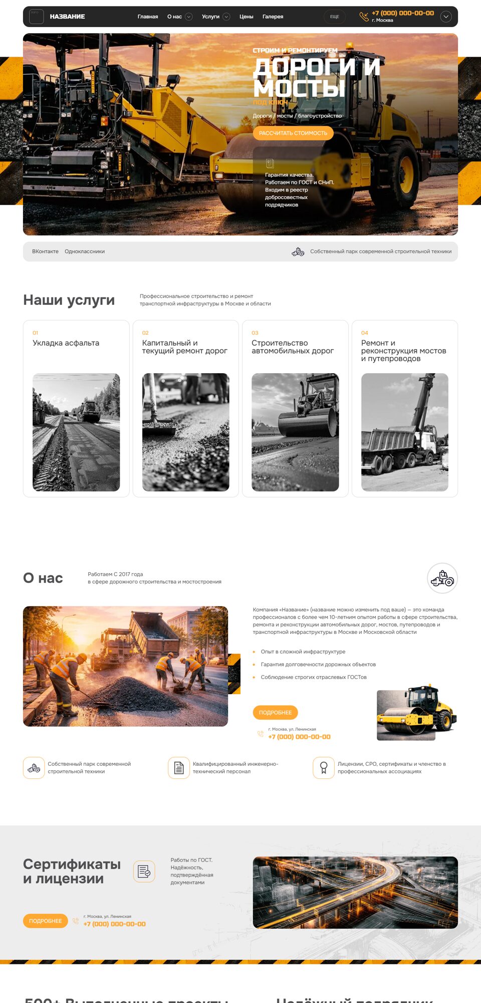 Готовый сайт 'Строительство и ремонт дорог, мостов' № 104938