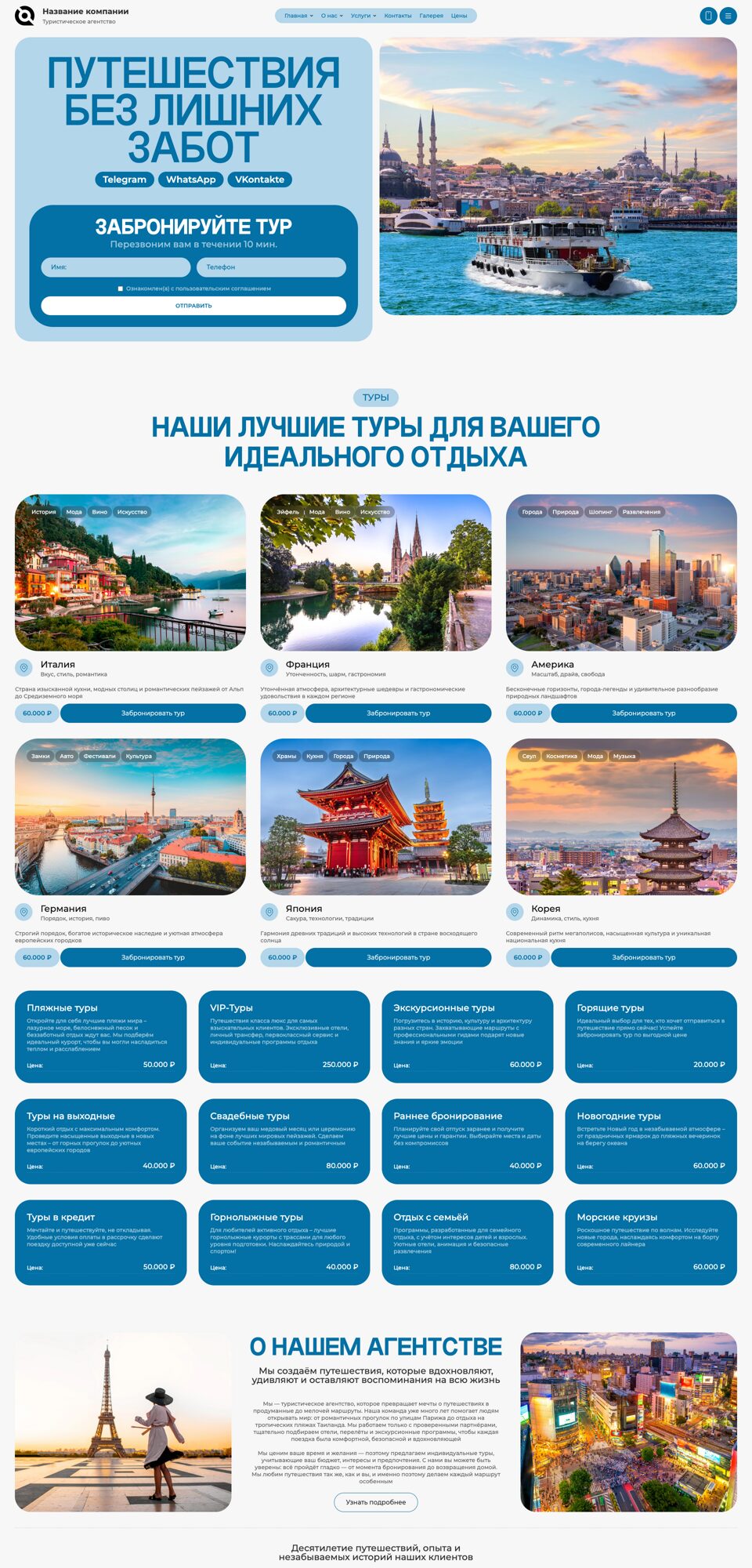Готовый сайт 'Туристические агентства, услуги' № 105159
