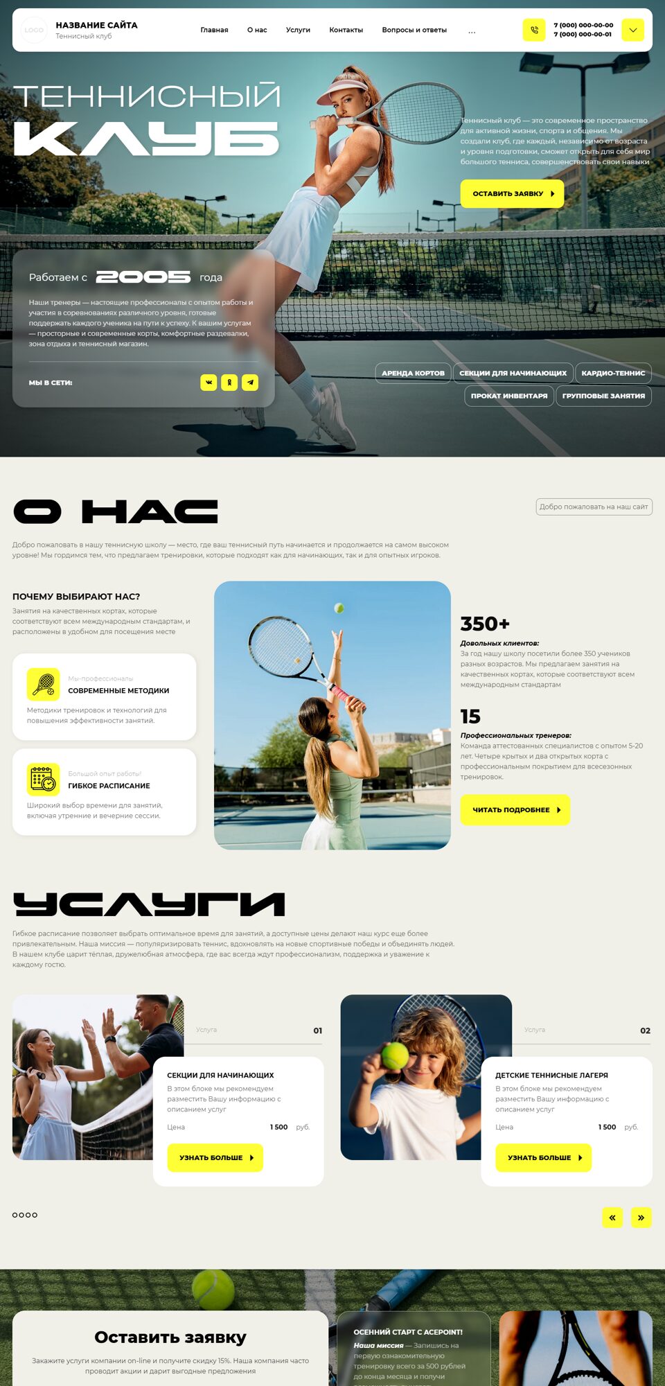 Готовый сайт 'Теннисный клуб, корт' № 68021