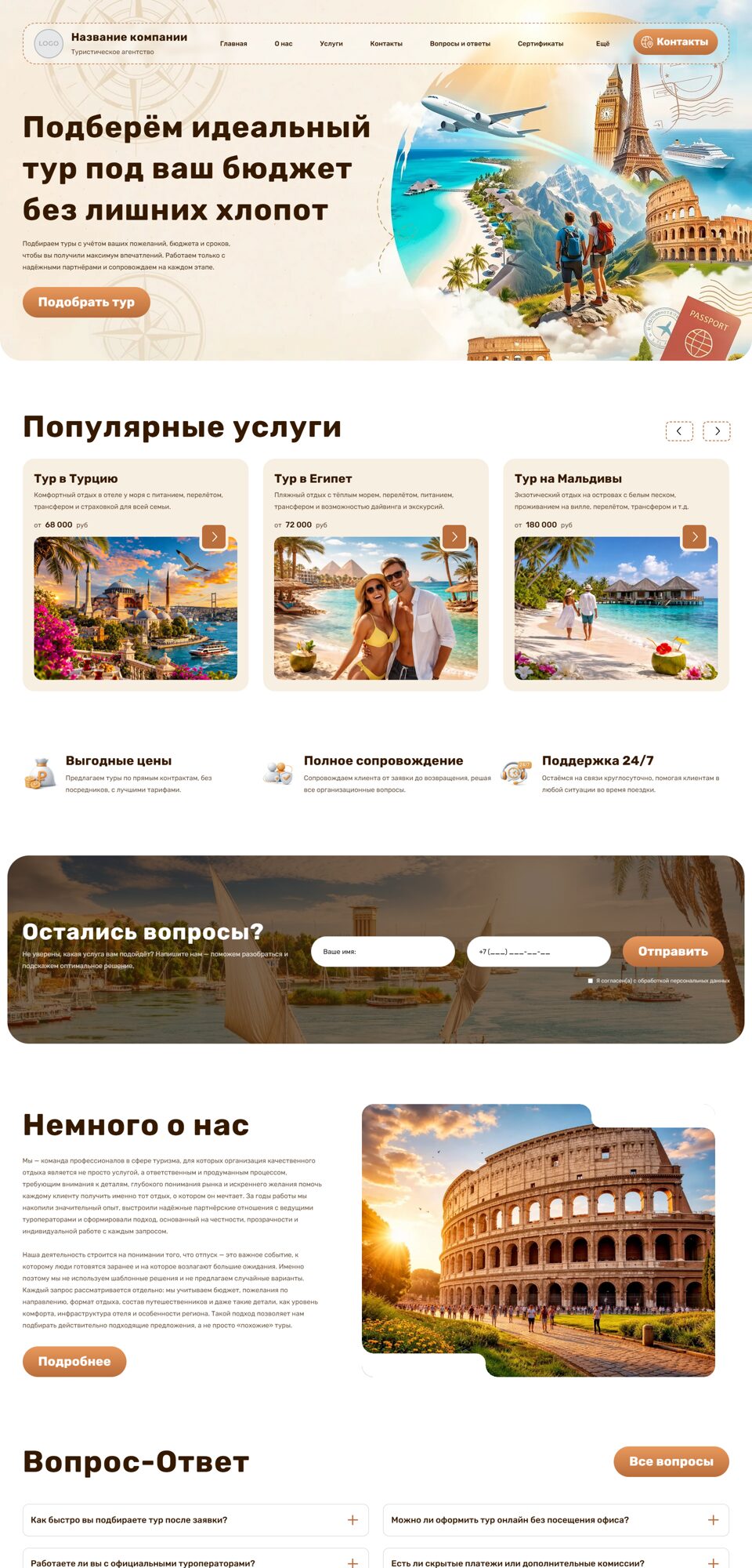 Готовый сайт 'Туристические агентства, услуги' № 71213