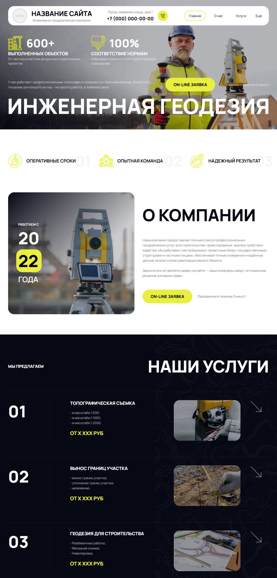 Готовый сайт 'Геодезические, геологические работы' № 71247