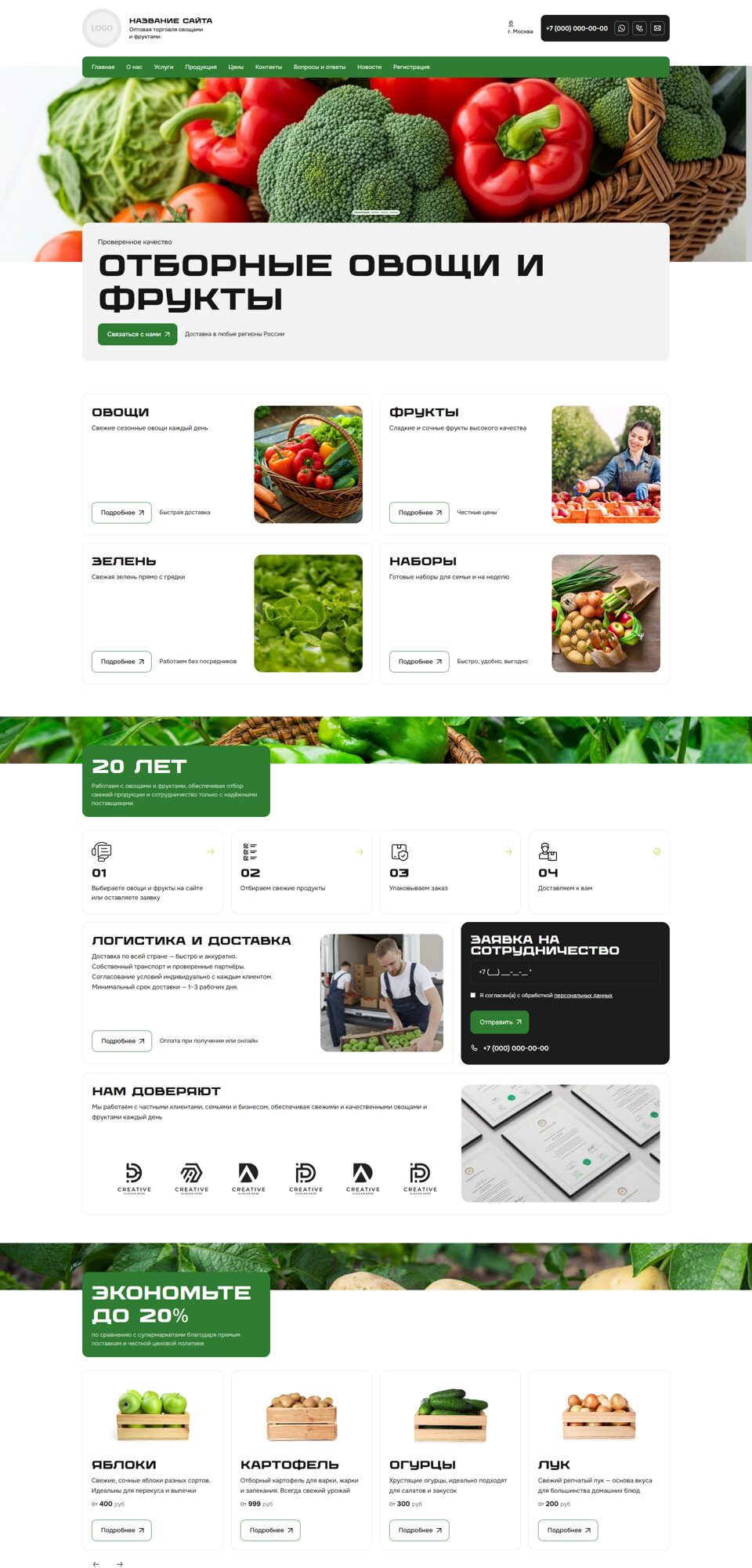 Готовый сайт 'Овощи, фрукты, орехи, грибы' № 75758