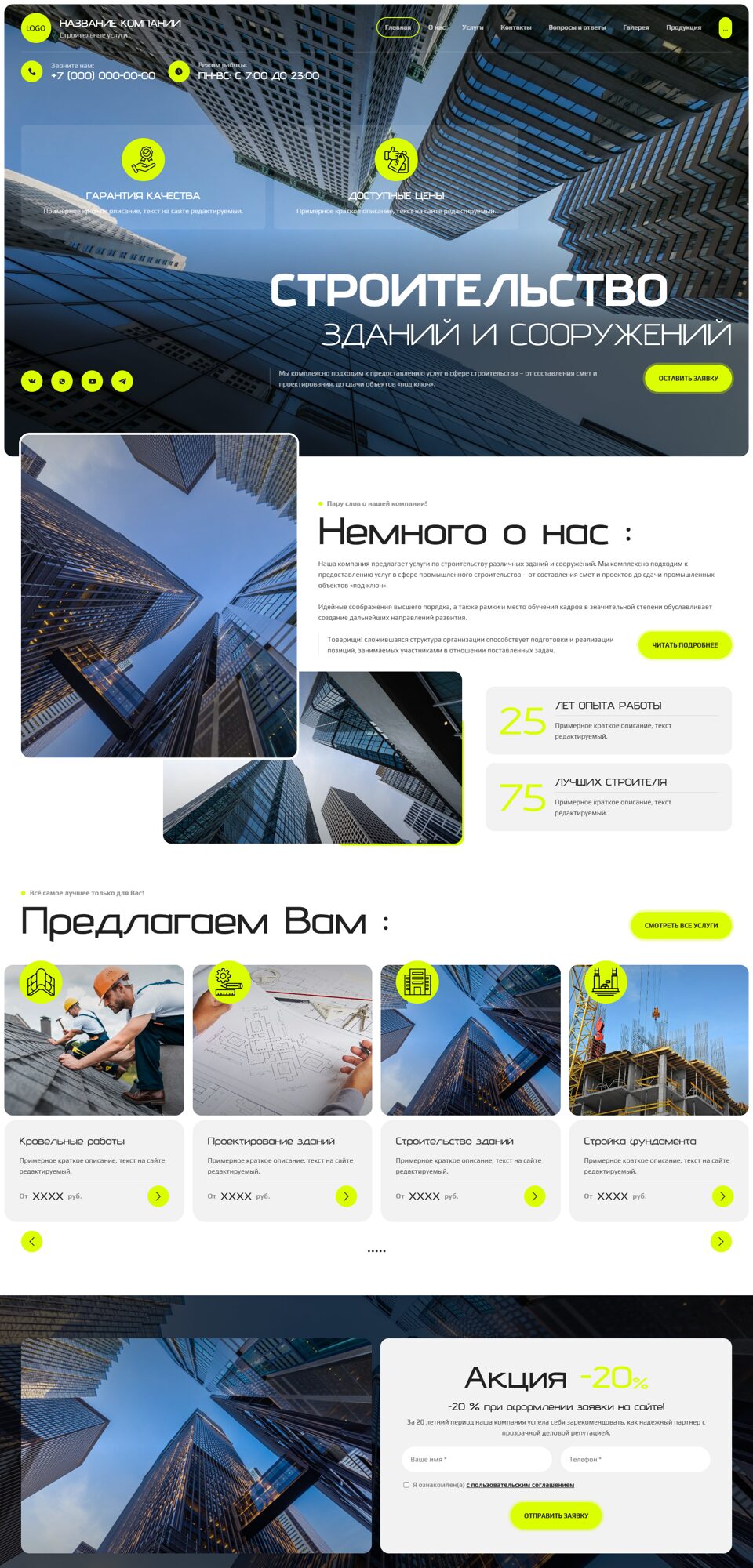Ничего страшного, если шаблон не подходит вам по тематике или роду деятельности вашей компании. Просто выберите тот шаблон, который вам нравится, а цвета, картинки и текстовое наполнение можно легко изменить в системе управления сайтом.
