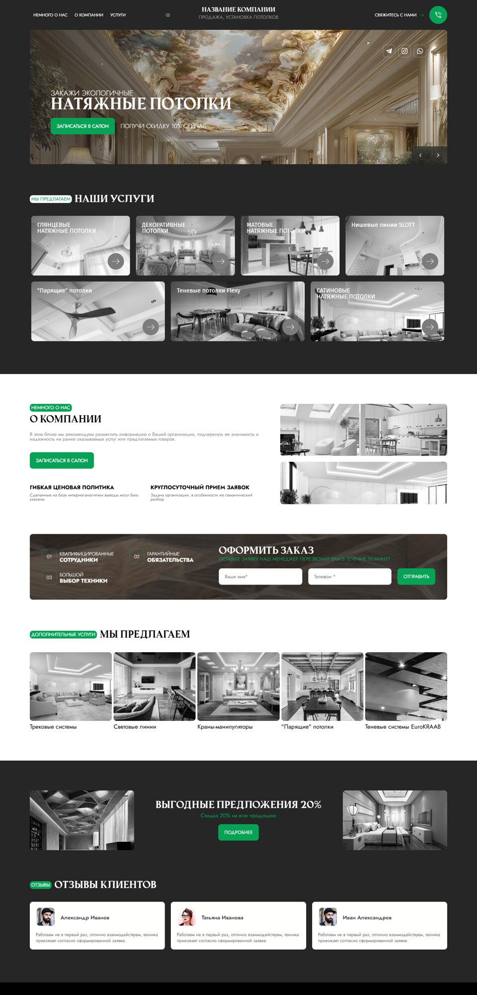Готовый сайт 'Продажа и монтаж потолков' № 79605