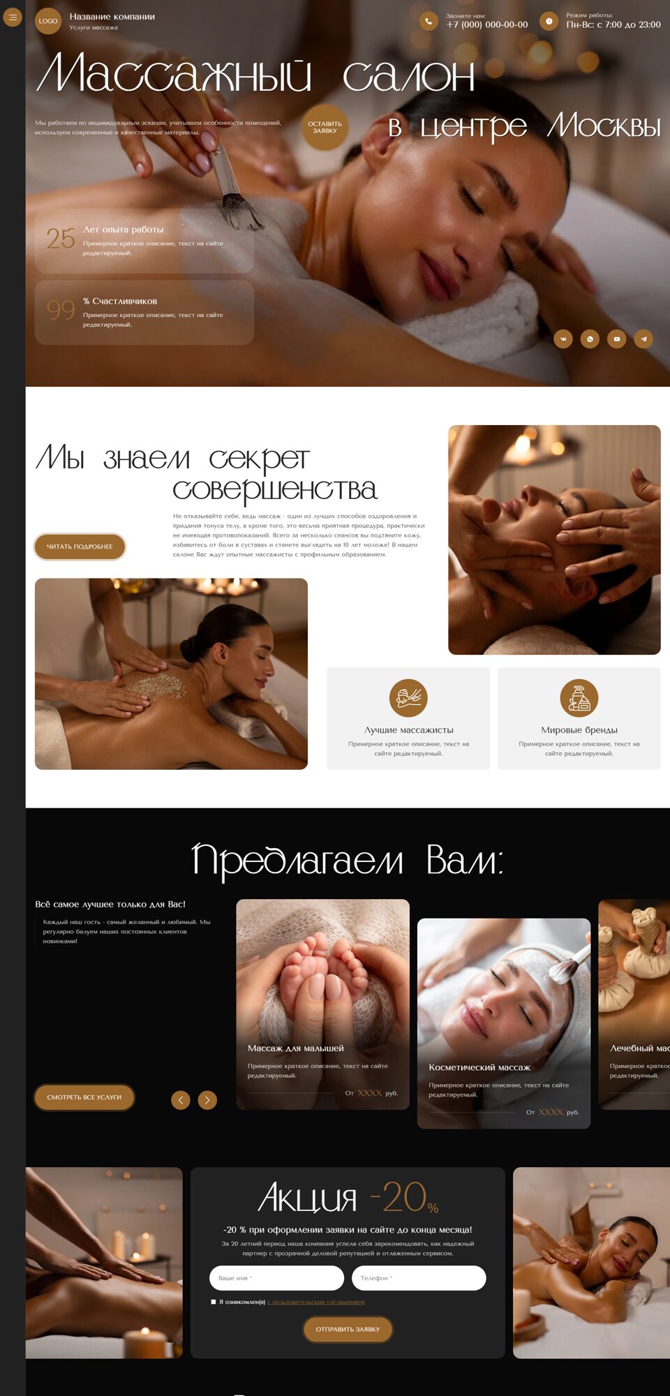 Выберите понравившийся дизайн, мы разместим в нём ваши фирменные элементы и цвета. После оплаты дизайн будет снят с продажи, он продается только один раз! Управлять сайтом проще простого, текстовое наполнение и картинки можно легко изменить в системе управления сайтом.