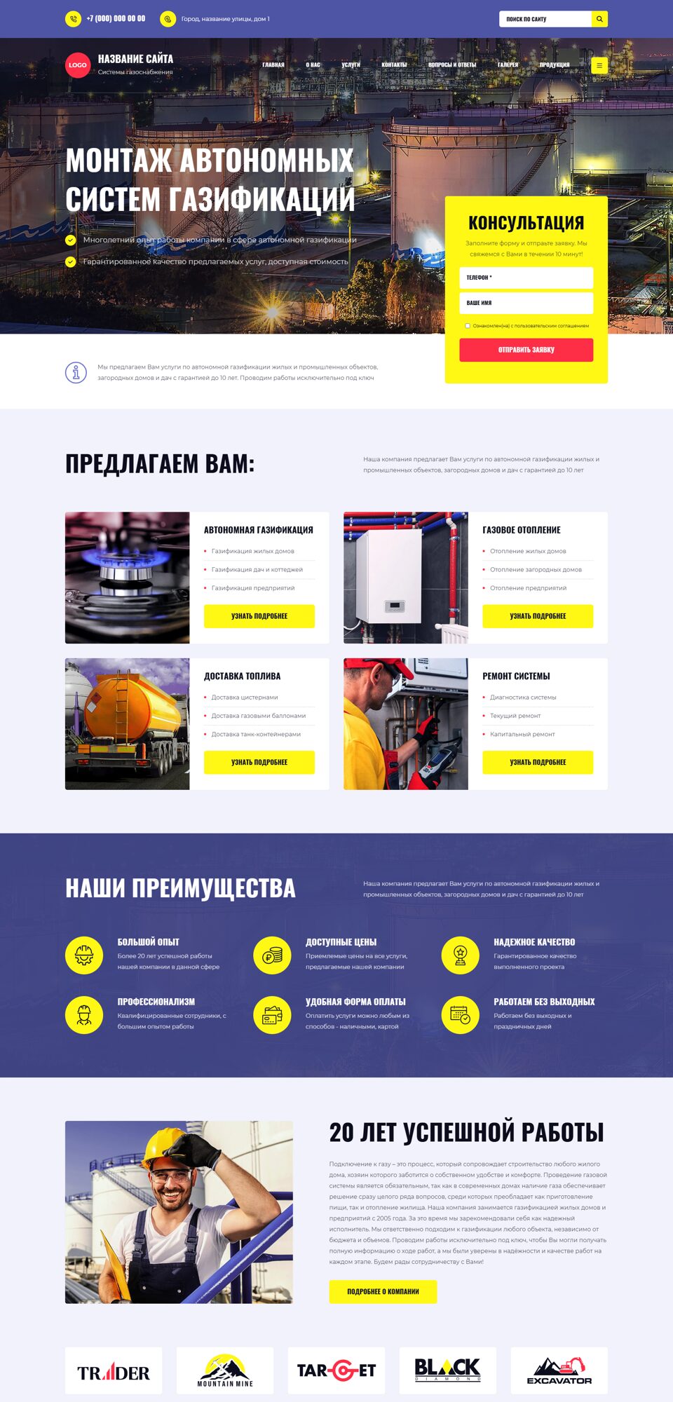 Готовый сайт 'Строительство и обслуживание систем газоснабжения' № 85729