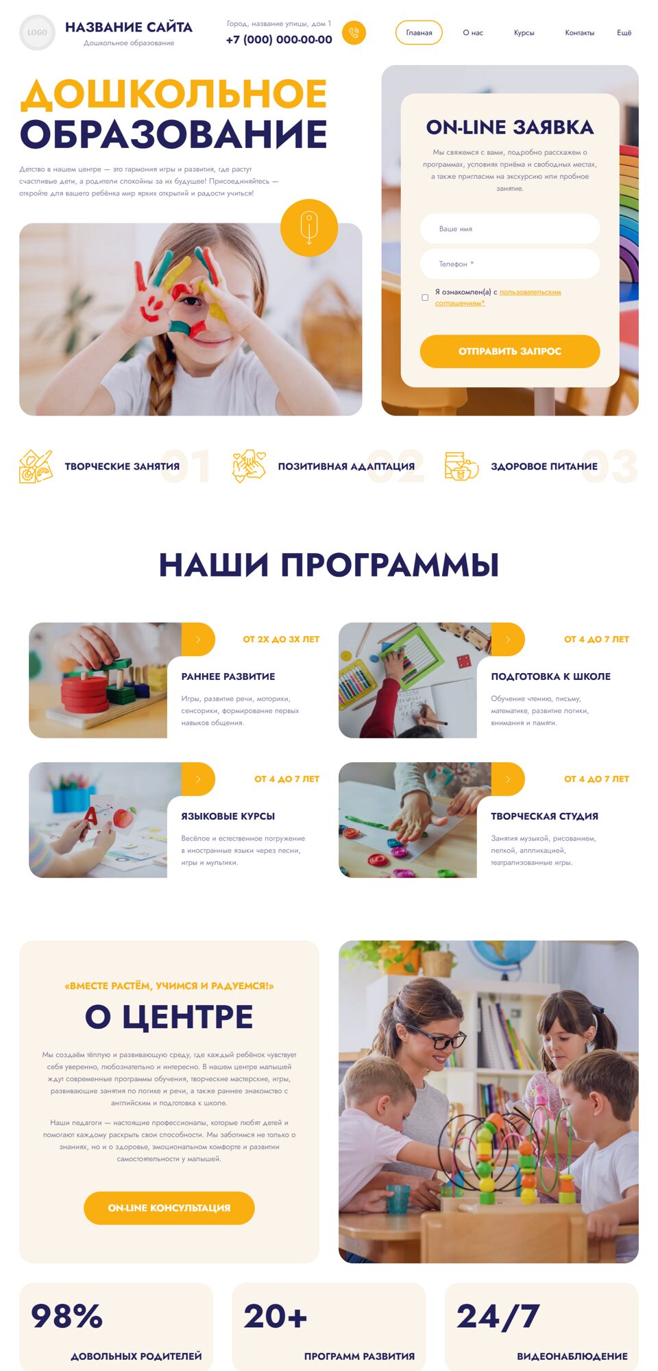 Готовый сайт 'Дошкольное образование, центры развития детей' № 86846