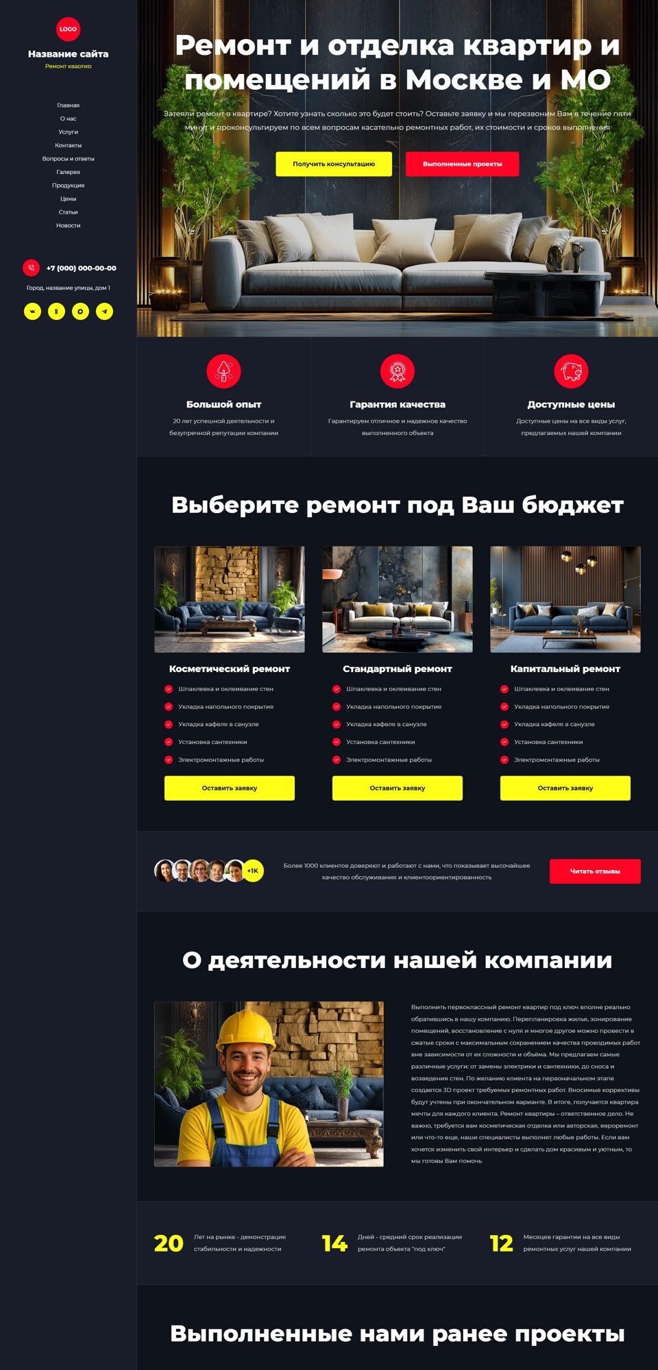 Готовый сайт 'Ремонт и отделка квартир и помещений' № 87200