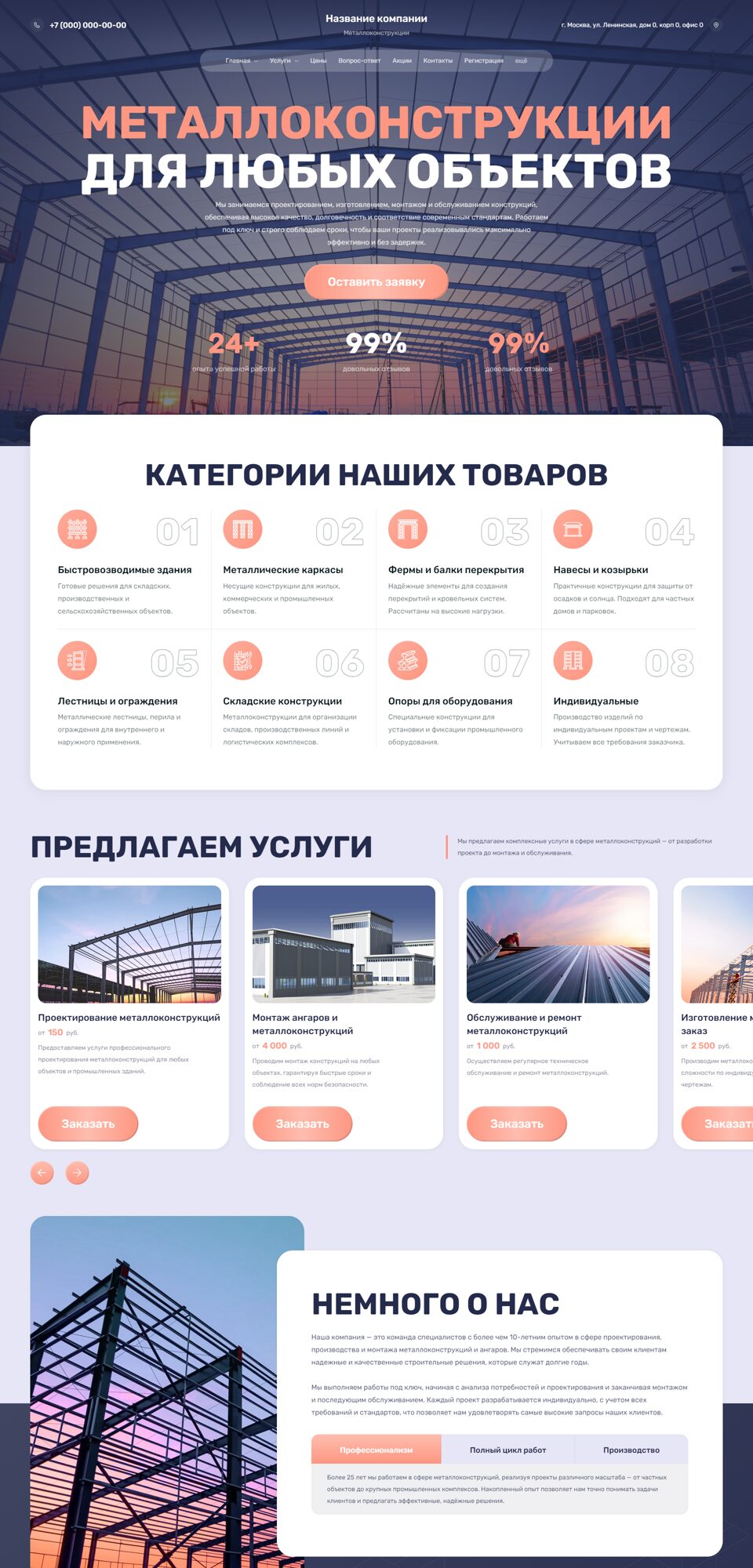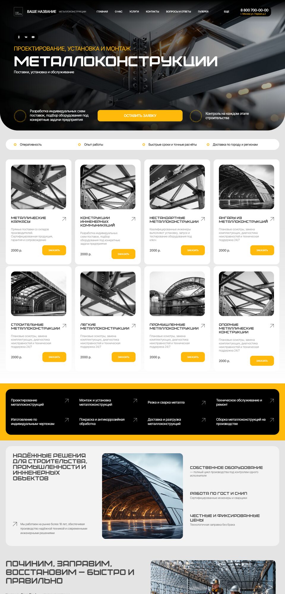 Готовый сайт 'Металлоконструкции, ангары' № 88575