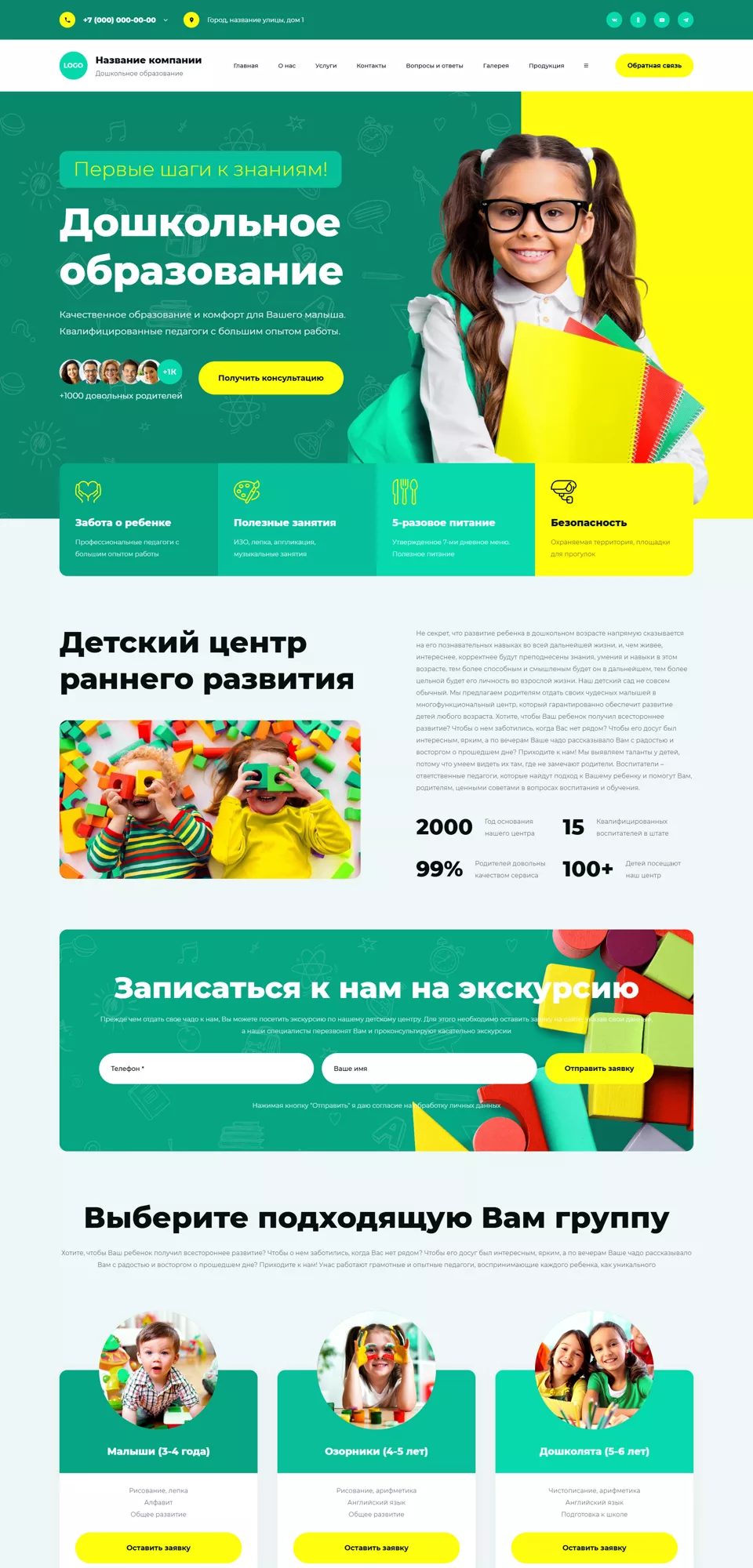 Готовый сайт 'Дошкольное образование, центры развития детей' № 88757