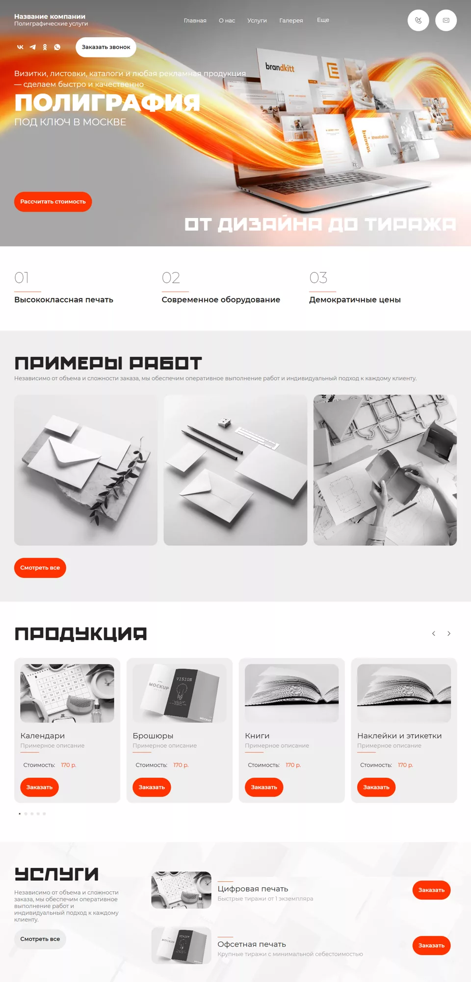 Готовый сайт 'Полиграфические услуги, тиражирование' № 90322