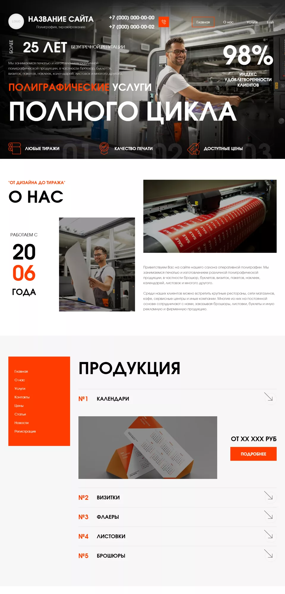 Выберите понравившийся дизайн, мы разместим в нём ваши фирменные элементы и цвета. После оплаты дизайн будет снят с продажи, он продается только один раз! Управлять сайтом проще простого, текстовое наполнение и картинки можно легко изменить в системе управления сайтом.