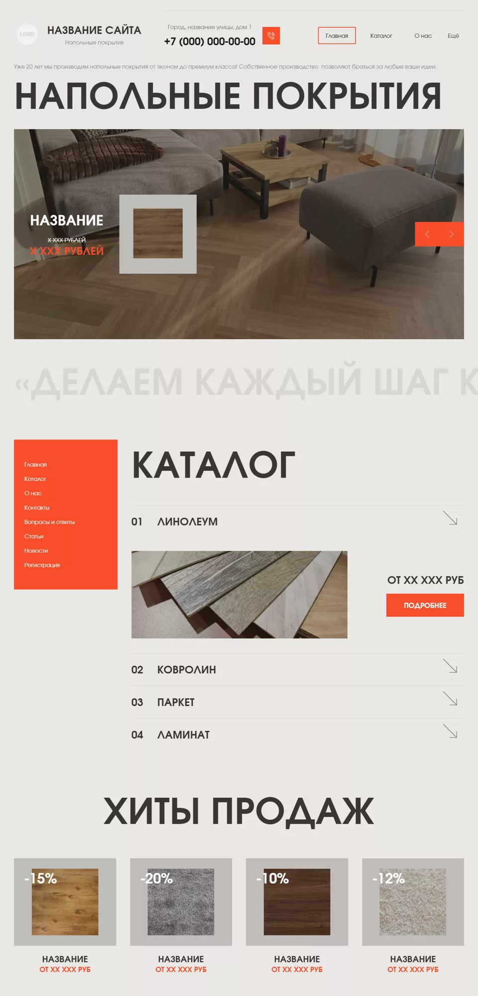 Готовый сайт 'Напольные покрытия, деревянные полы, комплектующие' № 90955