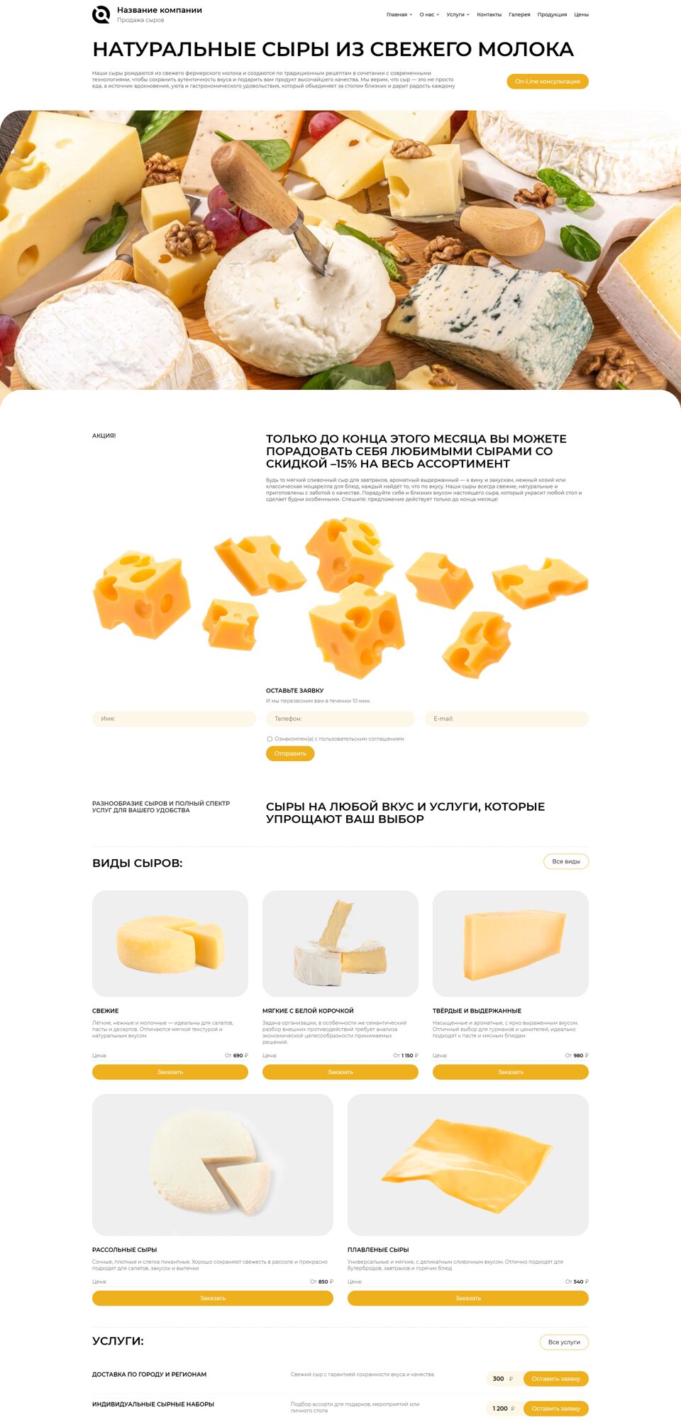 Готовый сайт 'Сыры' № 93634