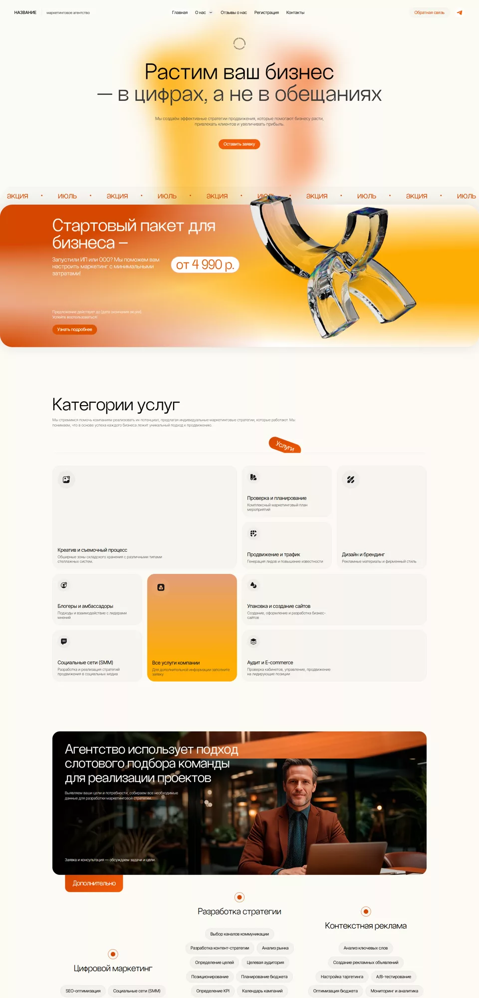 Готовый сайт 'Рекламное агентство, маркетинг, PR' № 96918