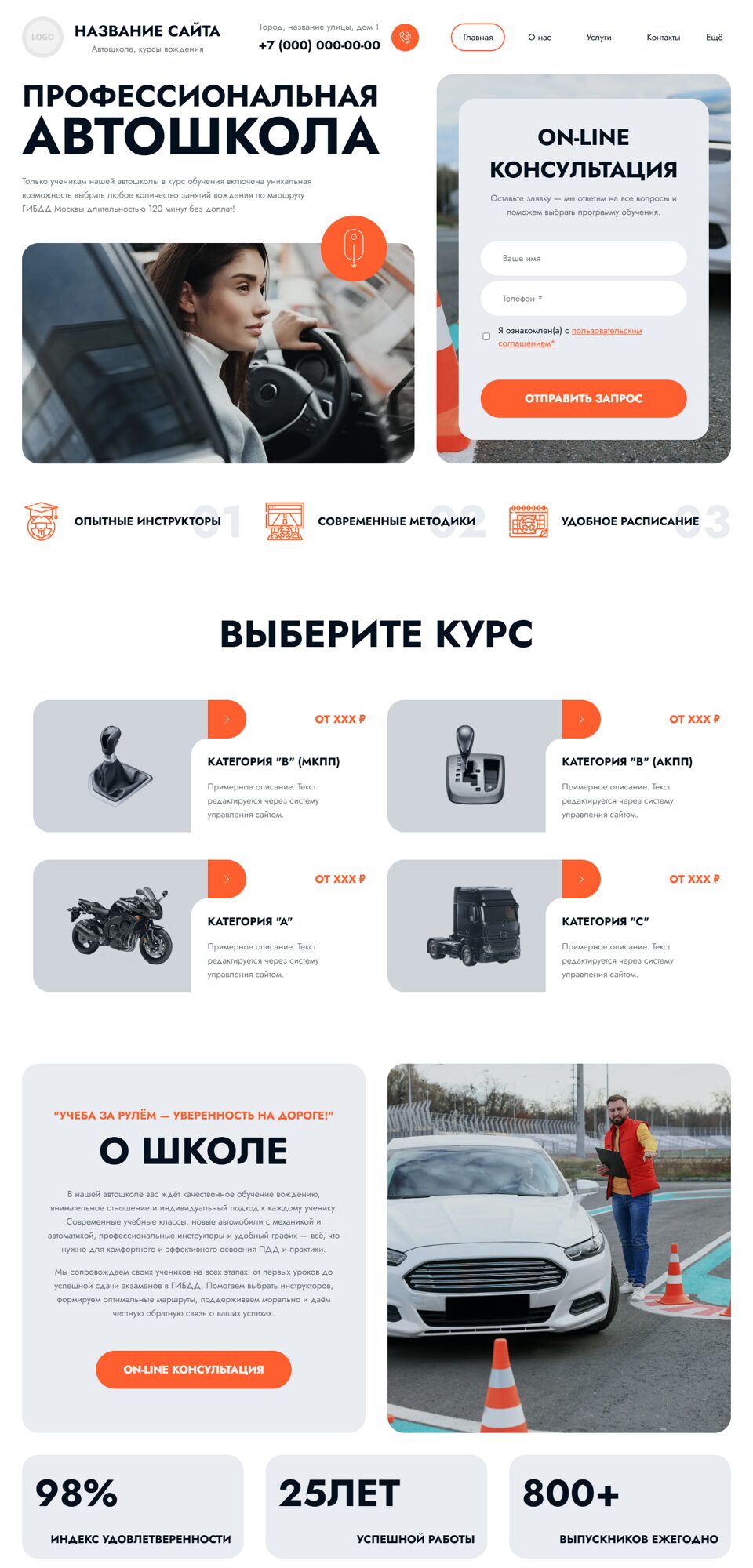 Выберите понравившийся дизайн, мы разместим в нём ваши фирменные элементы и цвета. После оплаты дизайн будет снят с продажи, он продается только один раз! Управлять сайтом проще простого, текстовое наполнение и картинки можно легко изменить в системе управления сайтом.