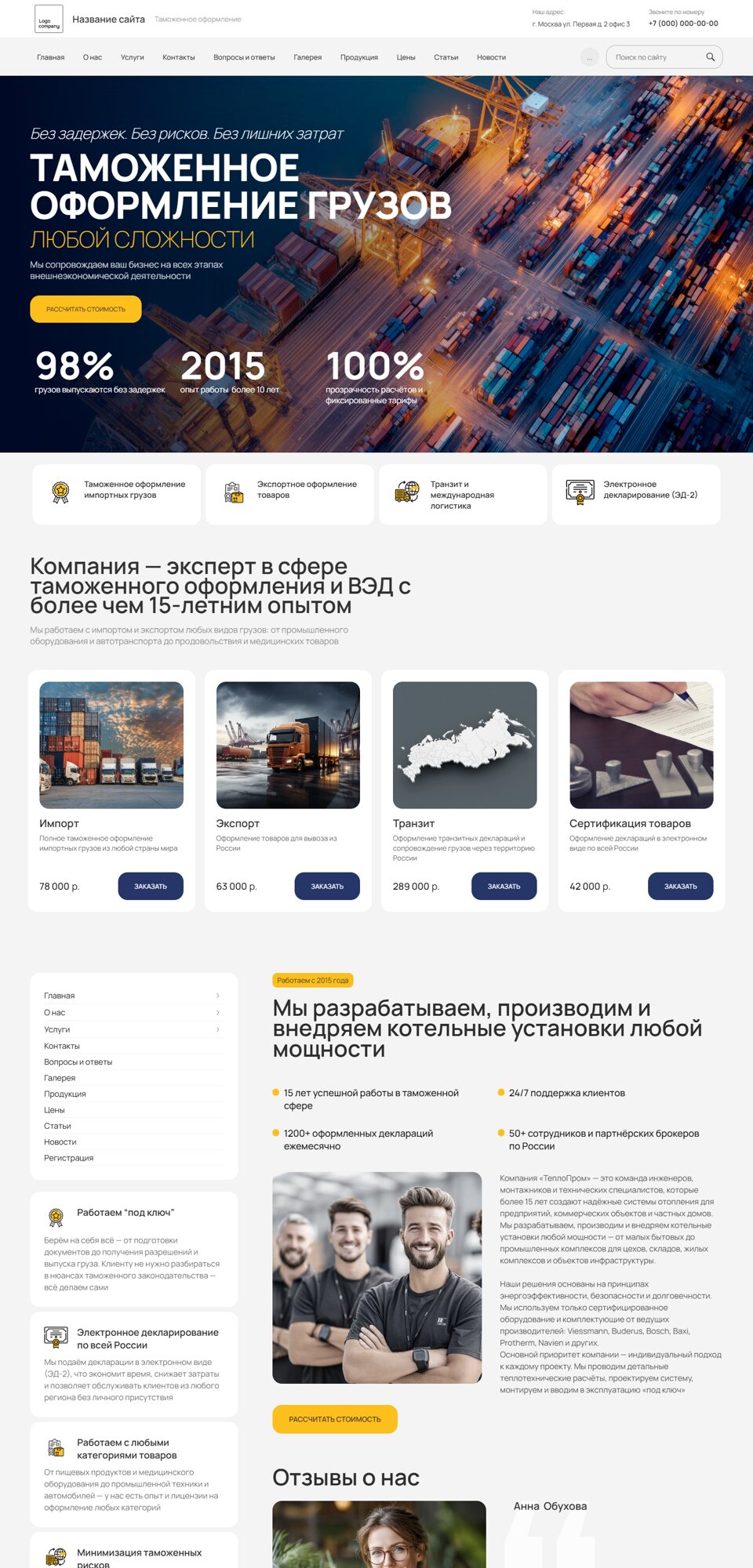 Готовый сайт 'Таможенные услуги, оформление' № 98038