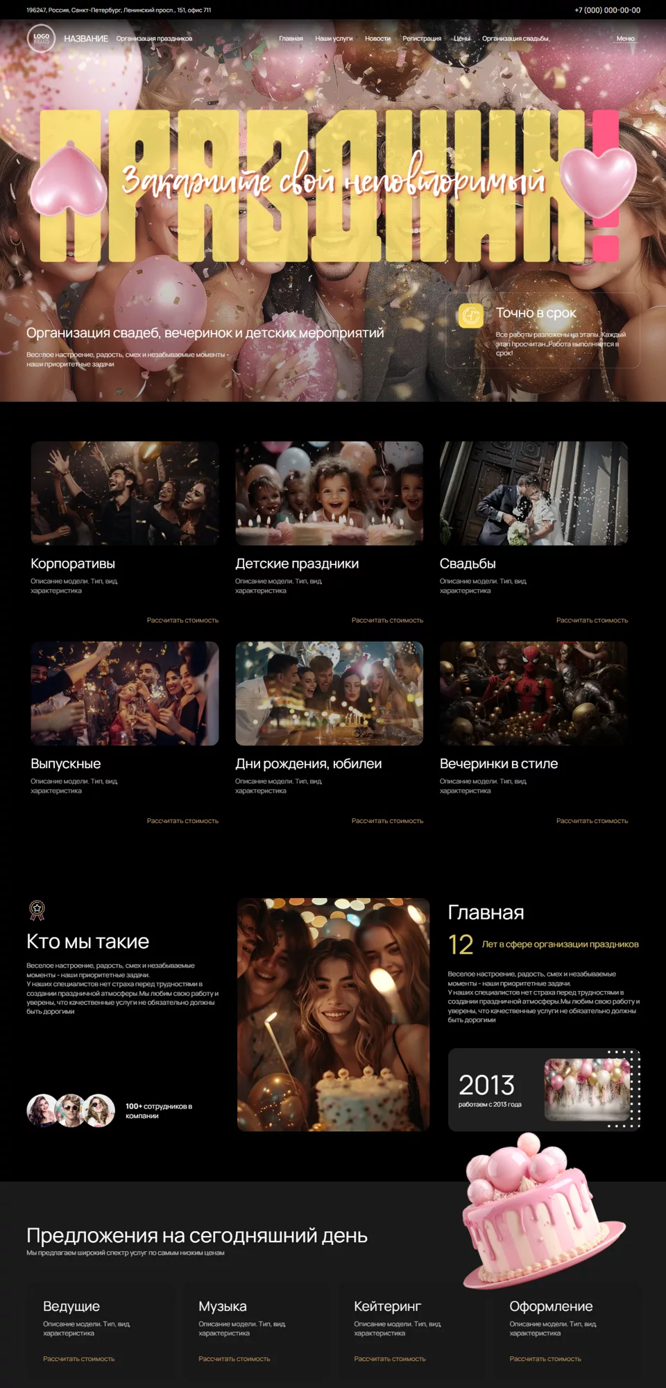 Готовый сайт 'Организация праздников и мероприятий' № 98083