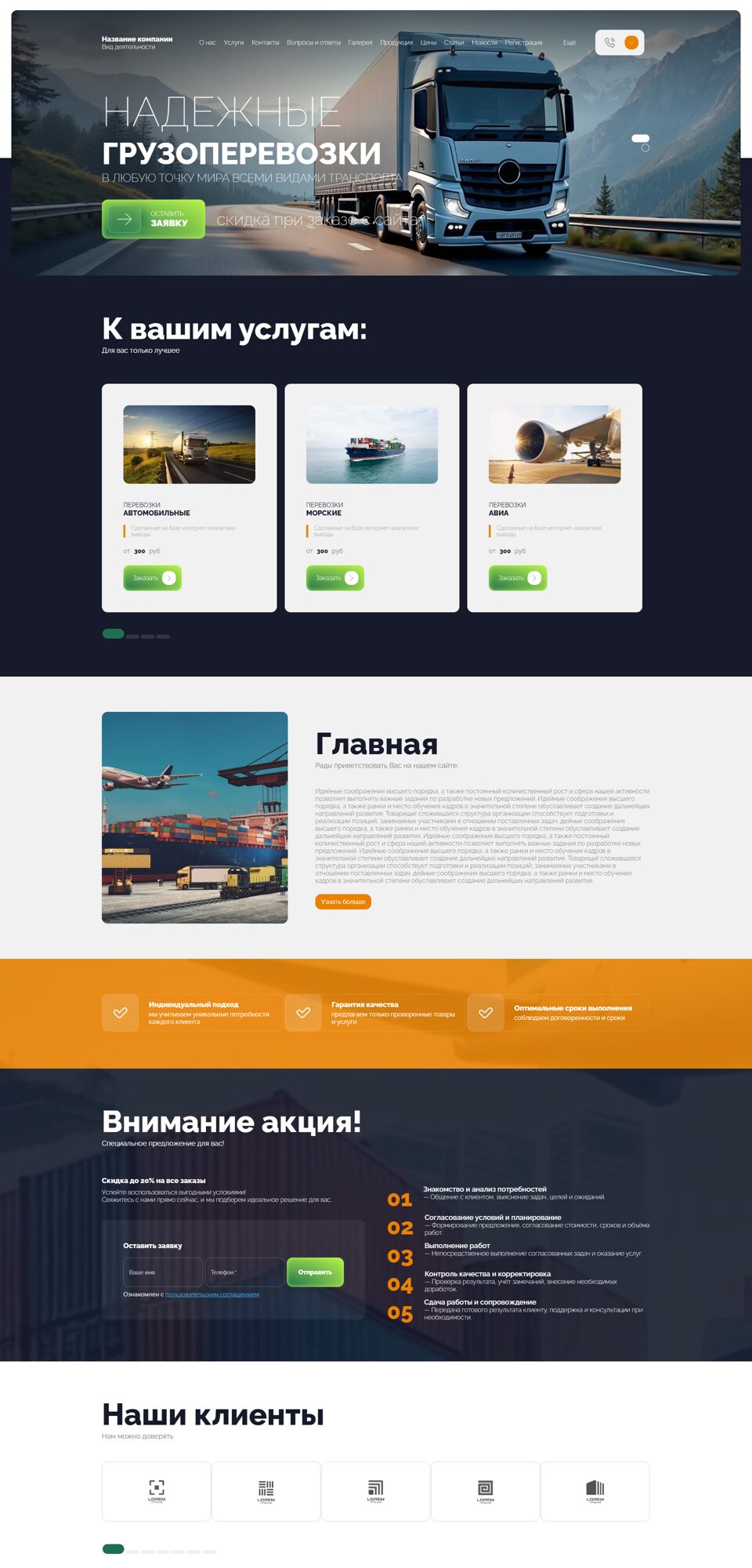 Ничего страшного, если шаблон не подходит вам по тематике или роду деятельности вашей компании. Просто выберите тот шаблон, который вам нравится, а цвета, картинки и текстовое наполнение можно легко изменить в системе управления сайтом.