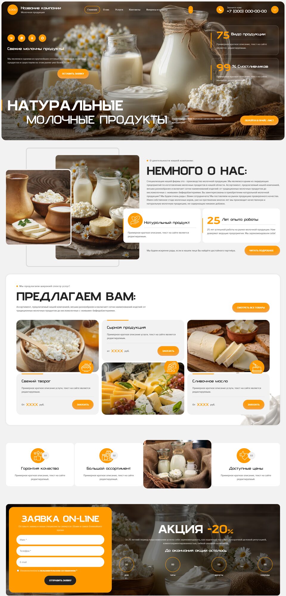 Вы – производитель молочной продукции и нуждаетесь в организации рынка сбыта? Для четкой налаженной работы вашего бизнеса необходима широкая известность. Данную задачу возможно решить, заказав сайт для бизнеса у нашей компании. Мы являемся одними из лучших специалистов на рынке разработки веб-ресурсов на протяжении более 20-ти лет. Обладая огромным опытом и некоторыми ноу-хау в создании сайтов, мы разработаем для вас Интернет-ресурс, который будет побуждать покупателей воспользоваться вашими услугами. Наши функциональные сайты содержат в себе только полезную информацию и являются современными маркетинговыми инструментами. Категория “Молочные продукты” включает в себя ассортимент таких готовых сайтов, как: собственные фермы, продажа деревенского молока, доставка фермерского сливочного масла и сыра и т.д. Сделав у нас заказ, вы незамедлительно будете наблюдать ускоренный рост числа новых клиентов. показать еще