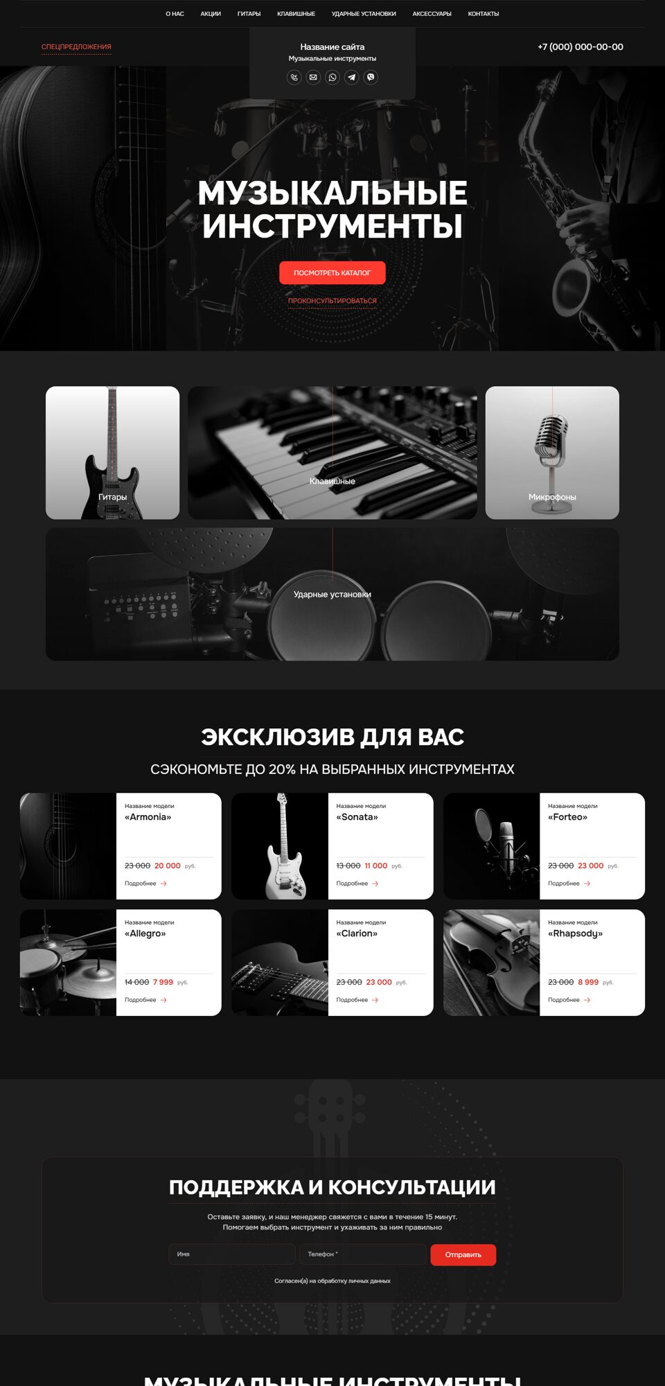 Занимаетесь продажей музыкальных инструментов для домашнего пользования или для профессиональных музыкантов? А может вы предоставляете доставку гитар, ударных инструментов или аксессуаров в любую точку страны? Тогда вам просто необходимо приобрести сайт, который станет отправной точкой в дальнейшем развитии вашего бизнеса. В продвижении вашей продукции вам поможет качественно разработанный нашими специалистами сайт, которые на протяжении 20-ти лет создают успешные коммерческие проекты. Наши веб-ресурсы отличаются привлекательным и соответствующим тематике бизнеса дизайном, удобной навигацией и быстрой загрузкой страниц. Из категории “Музыкальные инструменты” вы можете выбрать один из готовых вариантов сайтов: продажа гитар, барабанов и клавишных инструментов, акустические системы, профессиональные микрофонные радиосистемы и т.д. Создав сайт в нашей компании, вы сможете ощутить уверенный рост прибыли. Наши сайты – залог вашего успеха! показать еще